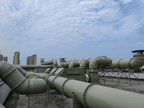 實驗所室的廢氣 → 特異性炭過濾清潔器 → 引鼓風機 → 排放出
